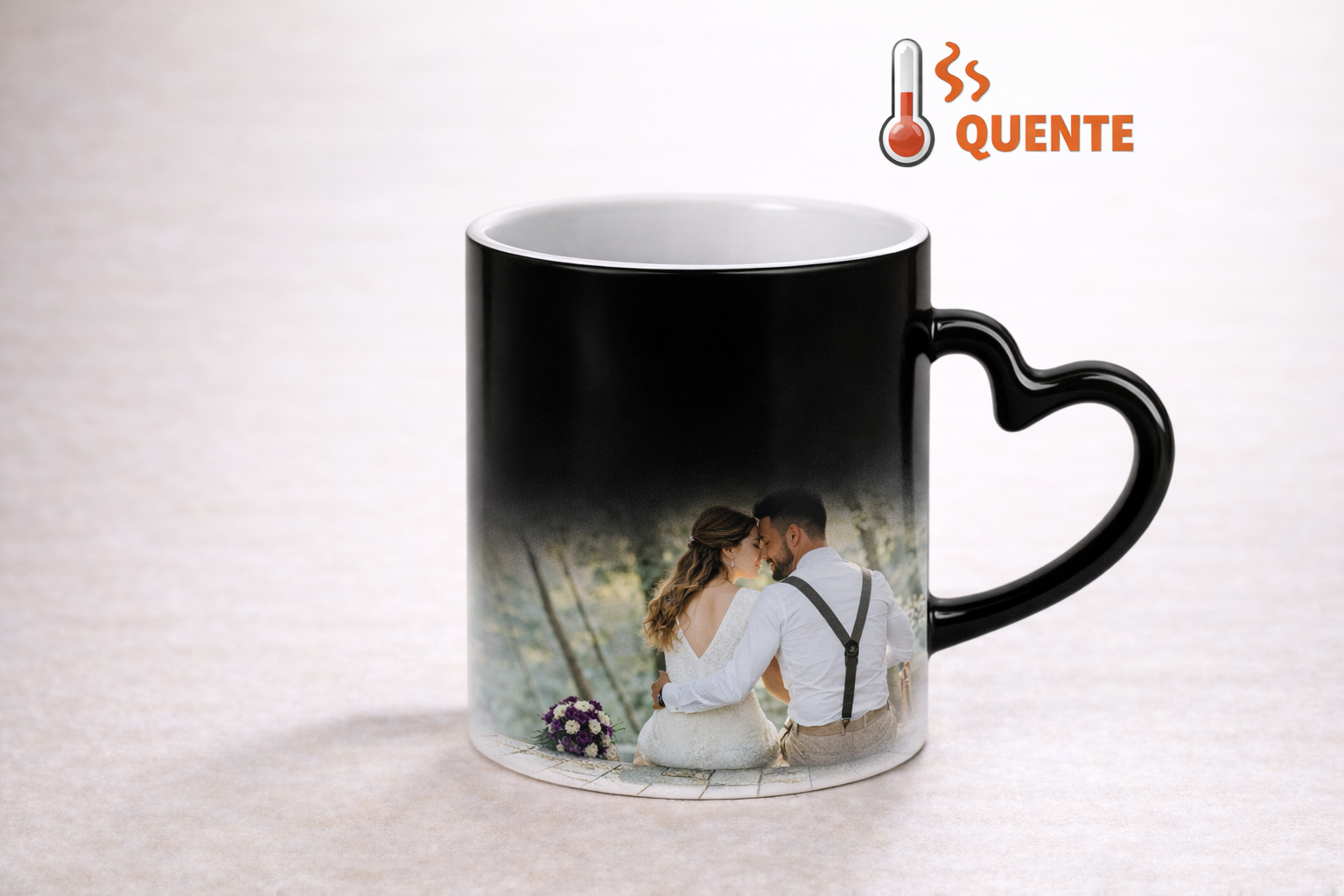 Caneca Mágica Preta Pega-Coração Personalizada