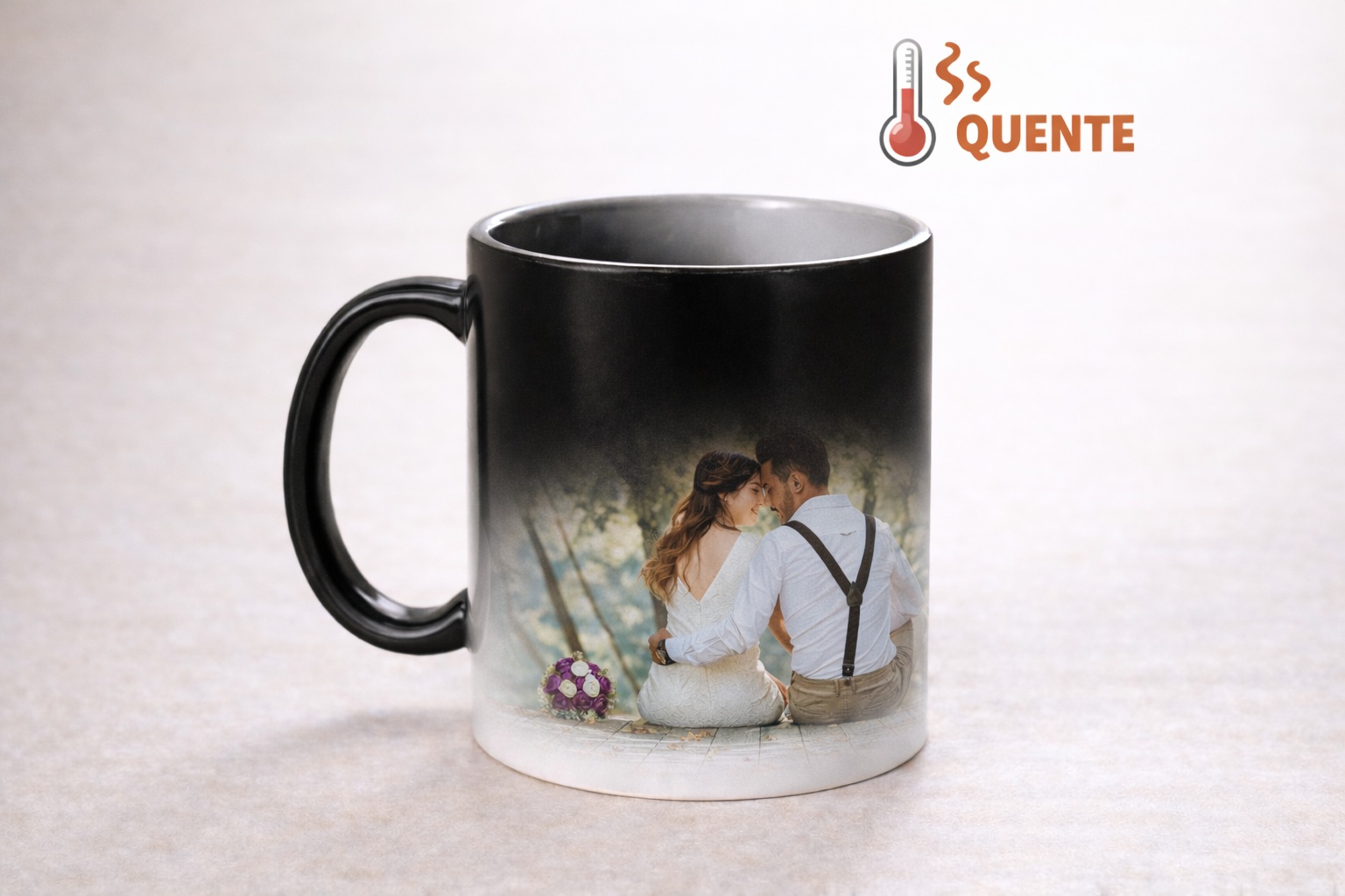 Caneca Mágica Preta Pega-Coração Personalizada